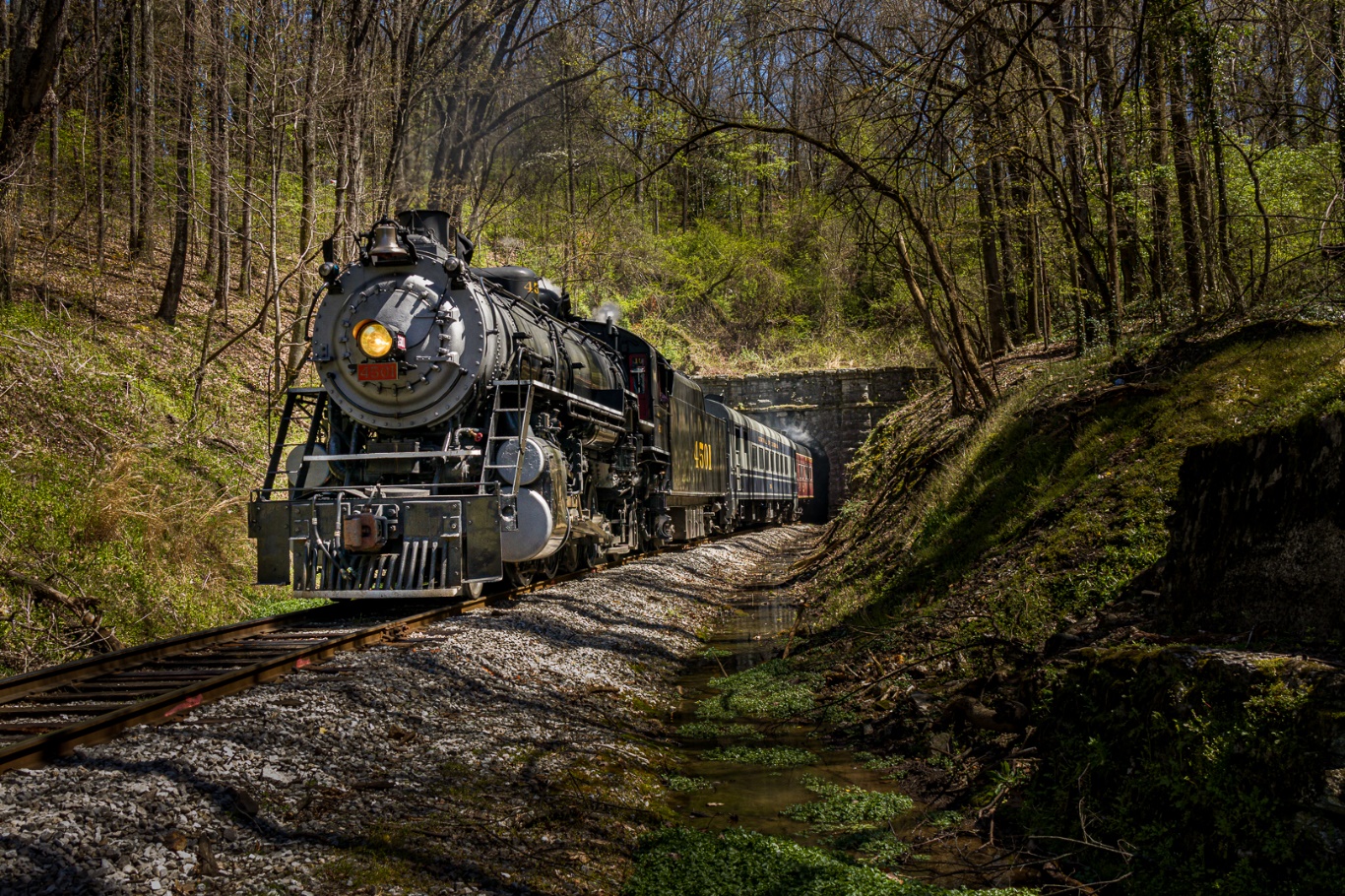 If you look at the first image below and pay attention to the shadows, you’ll see that the sun was high overhead and slightly to the right. The tunnel and tracks are in a gully, so the hillside on the left was brightly lit, the train was mostly lit by overhead raw sunlight, and the hillside on the right was more shaded. I chose to use manual exposure at 1/250 and f/8 and ISO 400. I needed the fast shutter speed to freeze the motion of the train, and I wanted f/8 for depth of field. These settings dictated the ISO 400 which is well within the good range for my camera. Once the train left the tunnel I only had about 20 seconds to shoot about 15 images, while continuously zooming out to capture the train as it got closer, so it was fortunate that I had the time to get all of my settings locked in. I also shot in RAW which gave me the most latitude in processing.