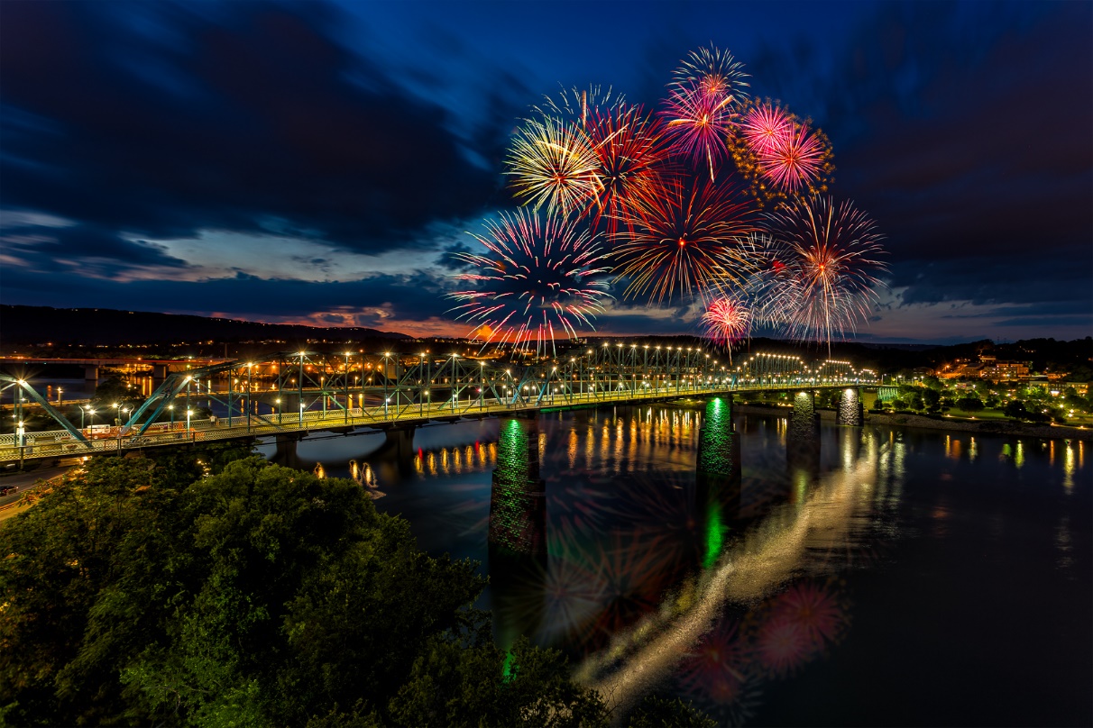 Processing I do most of my fireworks processing in Lightroom. I usually add a good bit of contrast and adjust the exposure for a good sky tone. Decreasing the black slider also helps make the bursts stand out better. Dehaze helps most shots, and may even minimize the haze from smoke on a night with no breeze. Vibrance and saturation can help bring out the color in your bursts and you may even want to go into Lightroom’s HSL/Color panel (Color Mixer in Camera Raw) and adjust individual colors to emphasize the fireworks. If the exposure for your sky with fireworks is very different from your foreground, you may use an adjustment mask like the brush or linear gradient to balance the scene.